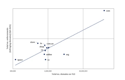 In this article, we consider the landscape of infringing websites over the period from October to December 2025, using a set of domain data obtained through takedown actions as a proxy for overall levels of infringements. Particular focus is given to the top-level domain names (TLDs, or domain extensions) of the websites in question, to determine whether certain extensions are generally more popular with infringers and could thereby be deemed higher risk.